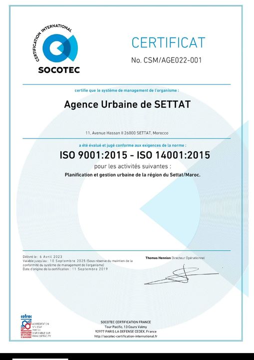 توصلت الوكالة الحضرية لسطات بشهادة إيزو الخاصة بالجودة والبيئة 9001 و 14001 صيغة 2015 بعد تجديدها من خلال الافتحاص الذي خضع له برنامج التدبير المندمج من طرف مكتب ... Read More