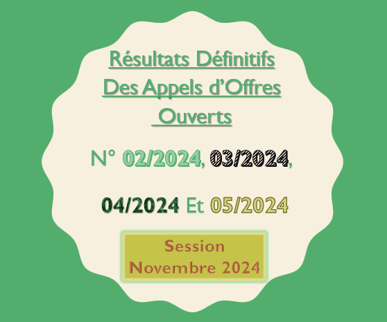 Résultats Définitifs Des Appels d’Offres Ouverts N° : 02/2024, 03/2024, 04/2024 Et 05/2024.